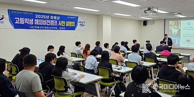 [ 한국미디어뉴스 이종철 기자 ] 장흥군은 15일 (재)장흥군인재육성장학회 주관으로 장흥고등학교에서 ‘2025년 장흥군 고등학생 해외비전캠프 사전설명회’를 개최했다.