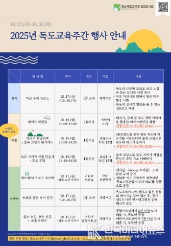 [ 한국미디어뉴스 이보영 기자 ] 경상북도교육청 청도도서관은 오는 10월 17일부터 30일까지 지역 주민을 대상으로 '2025년 독도교육주간 행사'를 운영한다.