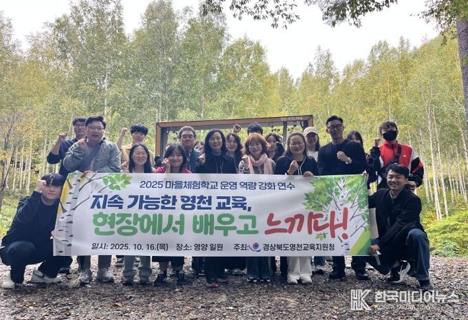 [ 한국미디어뉴스 이보영 기자 ] 경상북도영천교육지원청은 10월 16일, 영양 일원에서 ‘2025년 지속 가능한 영천형 마을체험학교 운영을 위한 현장 역량 강화 연수’를 실시했다.