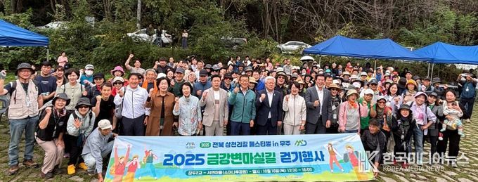 [ 한국미디어뉴스 이종철 기자 ] 전북특별자치도와 무주군이 공동 주최한 ‘2025 전북 삼천리길 페스티벌 in 무주 – 아름다운 금강변 마실길 걷기’ 행사가 16일 무주군 부남면 금강변 일원에서 200여 명이 참여한 가운데 성황리에 열렸다.