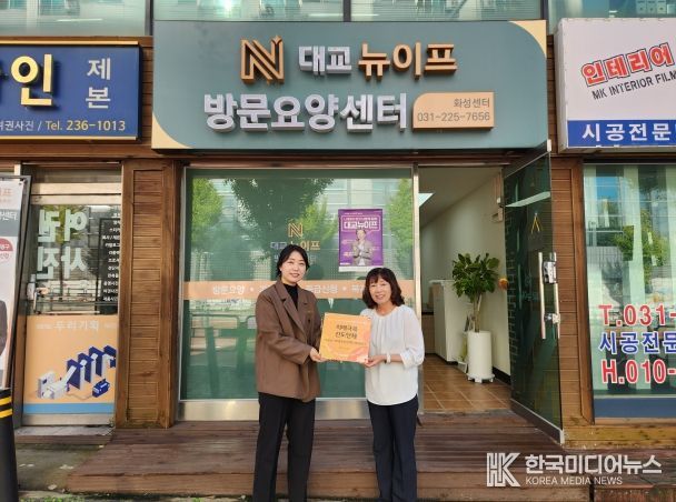 [ 한국미디어뉴스 이보영 기자 ] 화성특례시가 16일 병점동 소재 대교뉴이프 방문요양센터 화성센터를 ‘치매극복 선도단체’로 신규 지정하고 현판 전달식을 가졌다.