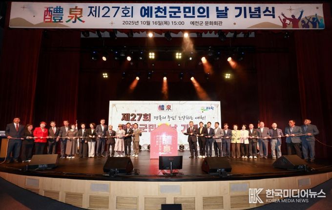 [ 한국미디어뉴스 이보영 기자 ] 예천군은 16일 오후 3시, 예천군문화회관에서 ‘제27회 예천군민의 날 기념식’ 을 성황리에 개최했다. 이번 행사는 기관·단체장과 군민 등 500여 명이 참석한 가운데, 군민의 자긍심을 높이고 군민 화합을 도모하는 뜻깊은 자리로 마련됐다.