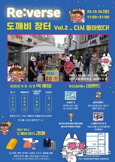 [ 한국미디어뉴스 이종철 기자 ] 광주 동구는 오는 18일 충장로 4가 일대(옛 조흥은행 사거리)에서 지역 상권 활성화를 위한 특별한 장터 ‘제2회 RE:VERSE 도깨비장터 IN 충장로’를 개최한다고 밝혔다.