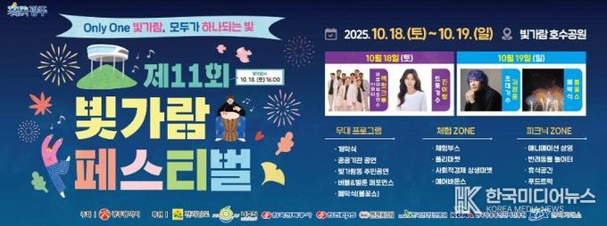 [ 한국미디어뉴스 이종철 기자 ] 전라남도는 광주전남공동혁신도시의 지난 10년을 넘어 새로운 시작을 알리고, 지역주민과 이전기관이 함께하는 ‘제11회 빛가람 페스티벌’을 18~19일 개최한다고 밝혔다.