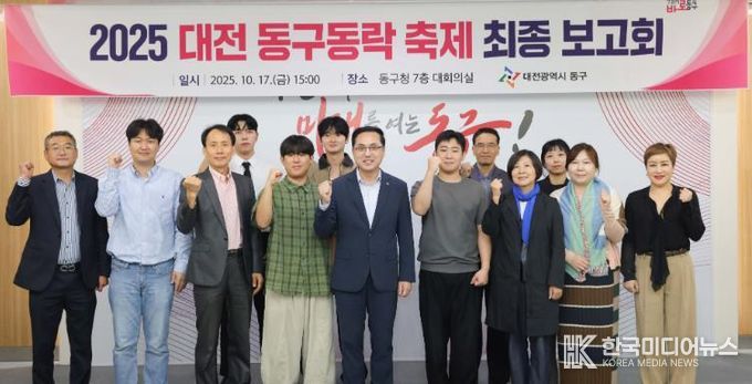 [ 한국미디어뉴스 이보영 기자 ] 대전 동구는 17일 구청 대회의실에서 ‘2025 대전 동구동락 축제’ 최종보고회를 개최하고, 축제 준비 상황을 종합 점검했다고 밝혔다.