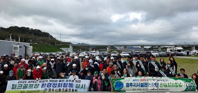 [ 한국미디어뉴스 이보영 기자 ] 경주시시설관리공단(이사장 김진태)은 10월 20일, 경주 제1·제2 파크골프장 일원에서 '2025 APEC 정상회의 경주'개최의 성공을 기원하며 유관기관 합동 환경정화 활동을 진행했다.
