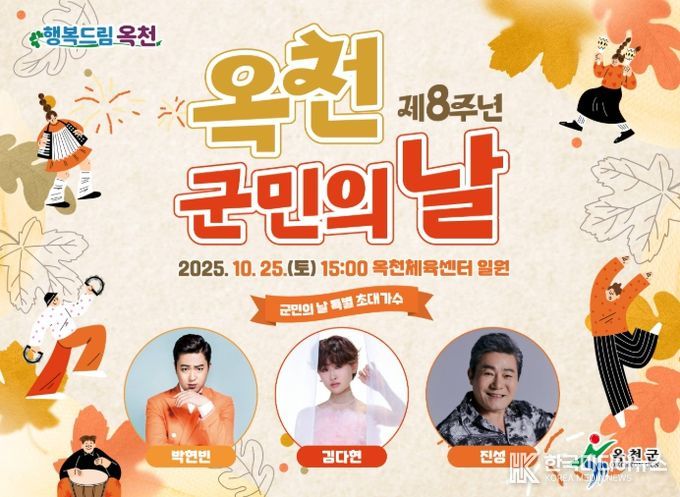 [ 한국미디어뉴스 김풍옥 기자 ] 옥천군이 ‘옥천군민의 날’을 맞아 오는 10월 25일 15시에 옥천체육센터에서 기념식과 함께 축하공연 등 다양한 행사를 개최한다.