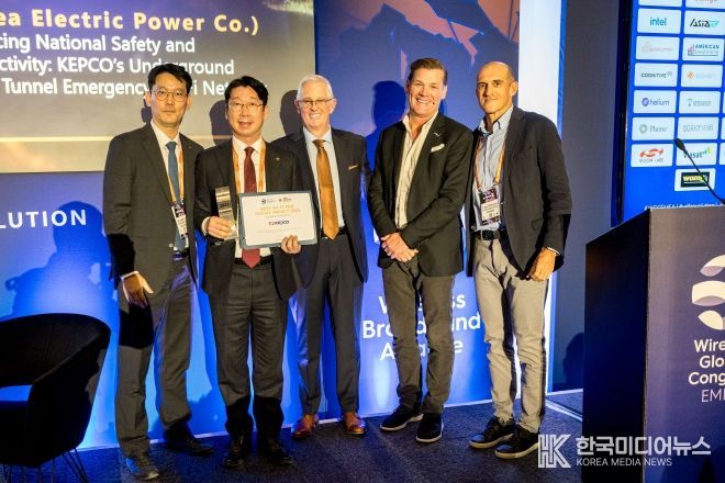 [ 한국미디어뉴스 이종철 기자 ] 한국전력이 지난 10월15일 프랑스 파리에서 개최된 ‘2025 WBA Industry Awards’(인더스트리 어워드)에서 ‘전력구 특화 비상통신망 기술’의 공공 서비스 혁신성을 인정받아 ‘사회적 가치 창출부문 대상(Best Wi-Fi for Social Impact)’을 글로벌 유틸리티 최초로 수상했다.