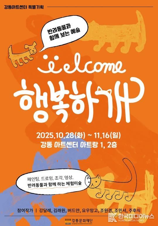 [ 한국미디어뉴스 이보영 기자 ] 강동문화재단은 오는 10월 28일부터 11월 16일까지 강동아트센터 아트랑에서 반려동물과 함께 예술을 경험할 수 있는 전시 《행복하개展》을 선보인다.