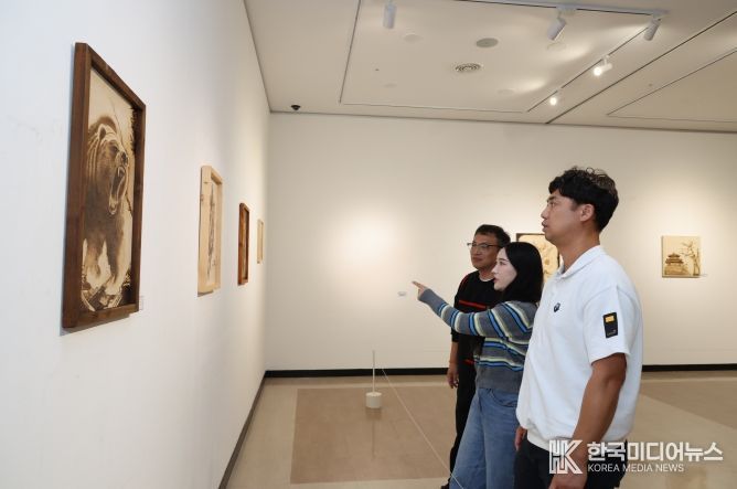 [ 한국미디어뉴스 이종철 기자 ] 무주군이 다양한 전시회를 열어 가을 방문객들을 손짓하고 있다. 무주최북미술관에서는 오는 10월 30일까지 “빛과 나무의 대화-무주in 인두화 展”이 개최된다.