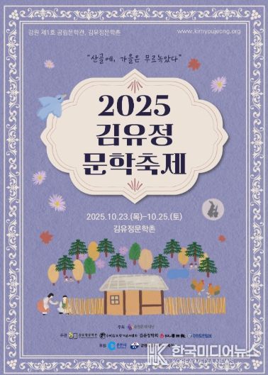 [ 한국미디어뉴스 이원영 기자 ] 가을빛이 깊어가는 신동면 실레마을에 문학의 향기가 물든다. 한국 근대 단편문학의 거장 김유정을 기리는 ‘2025 김유정문학축제’가 오는 23일부터 25일까지 김유정문학촌 일원에서 열린다.