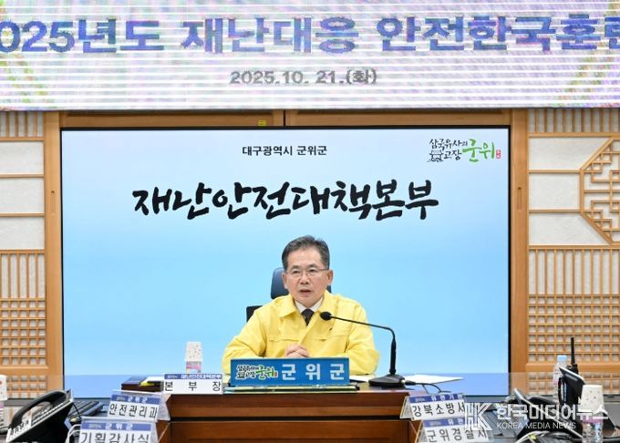 [ 한국미디어뉴스 이보영 기자 ] 대구시 군위군은 10월21일 김진열 군수 주재로 군민안전을 위한 풍수해 재난 대응 2025년 안전한국훈련을 실시했다.