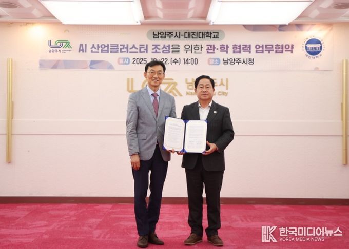 [ 한국미디어뉴스 김서안 기자 ] 남양주시는 22일 시청에서 대진대학교와 ‘AI 산업클러스터 조성을 위한 관·학 협력 업무협약’을 체결했다고 밝혔다.