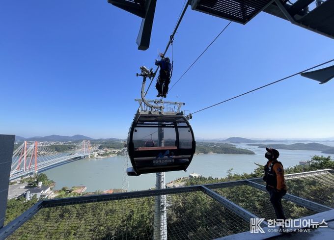 [ 한국미디어뉴스 이종철 기자 ] 가을여행주간을 맞이하여 전남도로 많은 가족단위 여행객들이 방문이 많아지면서 안전에 대한 관심이 높아지고 있는 가운데 명량해상케이블카는 지난 10월 20일 비상상황 대응 능력을 강화하기 위해 진도소방서와 함께 케이블카 합동 구조훈련을 실시했다.