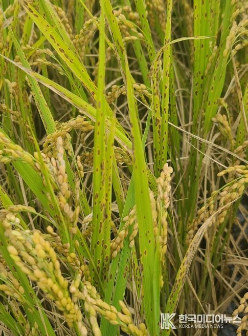 도 농기원에 따르면 올해는 벼 출수기 이후 고온과 잦은 강우가 이어지면서 ‘깨씨무늬병’이 확산되고, 이로 인해 등숙률 저하 및 쌀알 품질 저하가 우려되고 있다.