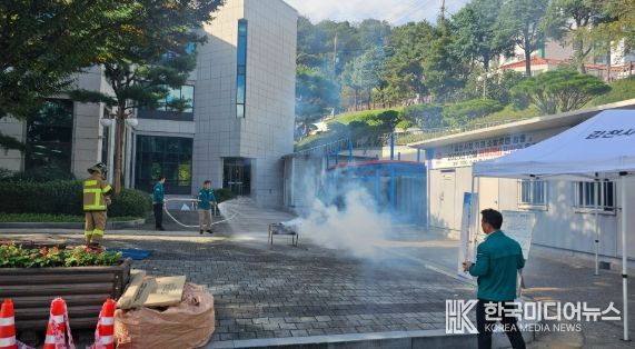 이번 훈련은 전산장비로 인한 화재 발생 상황을 가정하고, 전기화재에 대응할 수 있는 가스식 소화기를 사용하여 화재 발생 초기 단계에서 신속하게 진압하는 능력을 향상하는 데 초점을 맞춰 진행됐다.
