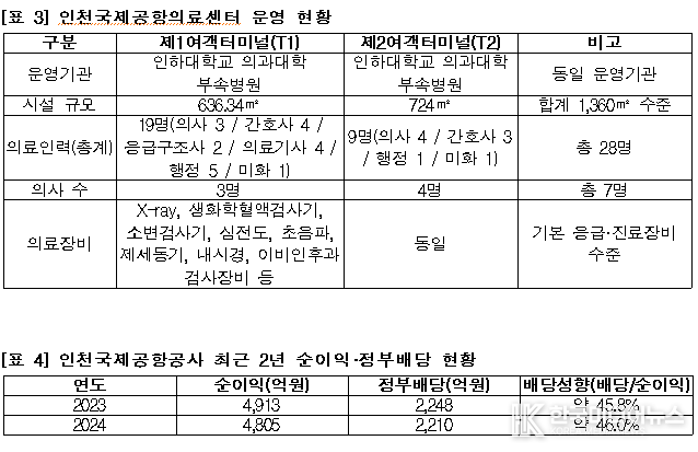 한편 공항공사는 2023년 4,913억 원, 2024년 4,805억 원의 순이익을 기록했고, 정부 배당금은 각각 2,248억 원, 2,210억 원이었다.
