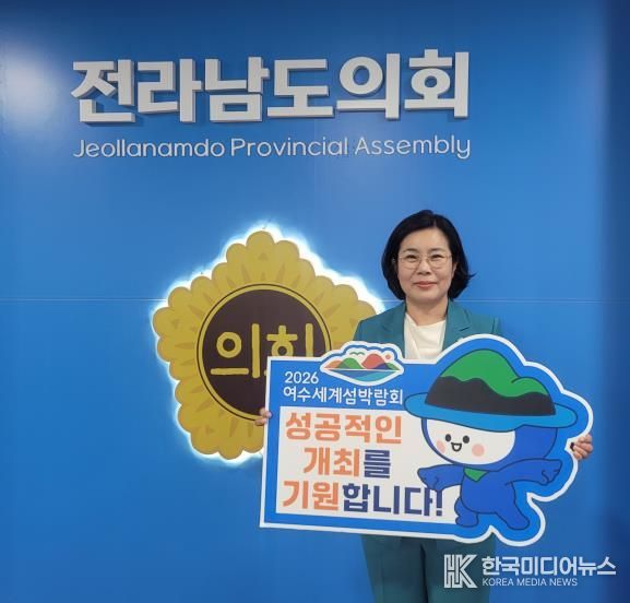 [ 한국미디어뉴스 이종철 기자 ] 전라남도의회 경제관광문화위원회 박경미 부위원장(광양4, 더불어민주당)은 '2026여수세계섬박람회'의 성공 개최를 기원하는 릴레이 응원 챌린지에 동참하며 박람회에 대한 도민의 관심과 참여를 적극 독려했다.