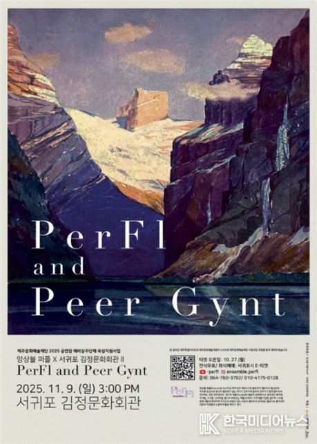 [ 한국미디어뉴스 이원영 기자 ] 서귀포시는 2025년 공연장 상주단체 육성지원사업의 일환으로, 11월 9일 오후 3시 김정문화회관 공연장에서 앙상블 퍼플의 플루트·타악기 앙상블 공연 '페르귄트'를 개최한다.