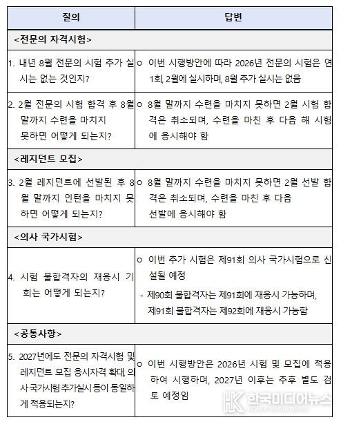 그동안 2025년 하반기 전공의 모집을 통해 상당수 전공의가 수련병원에 복귀했고, 9월부터 수련을 재개한 레지던트 마지막 연차는 내년 8월 말에 수련을 마칠 예정이다. 기존의 자격시험 일정에 따를 경우, 내년 수련완료 예정인원 2천여 명 중 약 2/3에 해당하는 1,300여 명이 내년 8월에 수련을 마치고 2027년 2월 자격시험까지 6개월간 대기해야 하며, 이에 따라 전문의 인력 배출도 지연되는 문제가 제기되어 왔다.