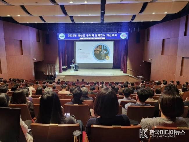 [ 한국미디어뉴스 김서안 기자 ] 예산군은 지난 28일 군청 추사홀에서 공직자 300여명을 대상으로 장애인식 개선교육을 실시했다.