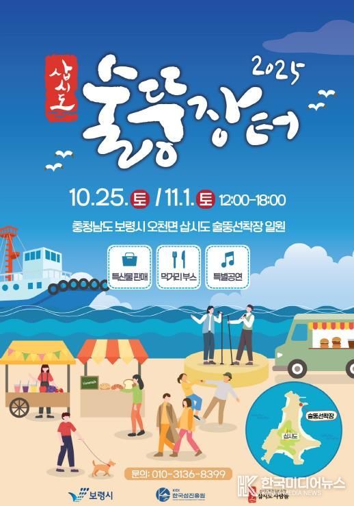 [ 한국미디어뉴스 김서안 기자 ] 보령시는 11월 1일 오후 12시부터 6시까지 삽시도 술뚱선착장 일원에서 ‘삽시도 술뚱장터’ 행사를 개최한다고 밝혔다.