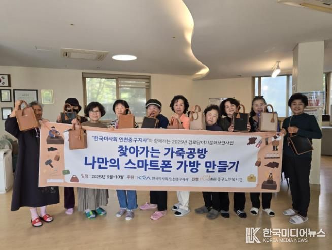 [ 한국미디어뉴스 최치남 기자 ] 인천중구노인복지관은 지역 어르신 여가문화 활성화를 위한 ‘찾아가는 가죽공방 '나만의 스마트폰 가방 만들기'’ 프로그램을 성황리에 운영했다고 30일 밝혔다.