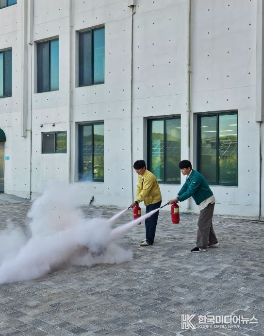 훈련에는 이정국 부군수를 비롯해 공직자 100여 명과 소방관 10명이 참여했으며, 청사 내 화재 발생을 가정한 실제 대응훈련이 이뤄졌다.