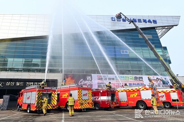 [ 한국미디어뉴스 이원영 기자 ] 부평구는 30일 삼산월드체육관에서 재난 대응 역량 강화를 위한 지진·화재 등 복합 재난 대비 ‘2025년 안전한국훈련’을 실시했다.