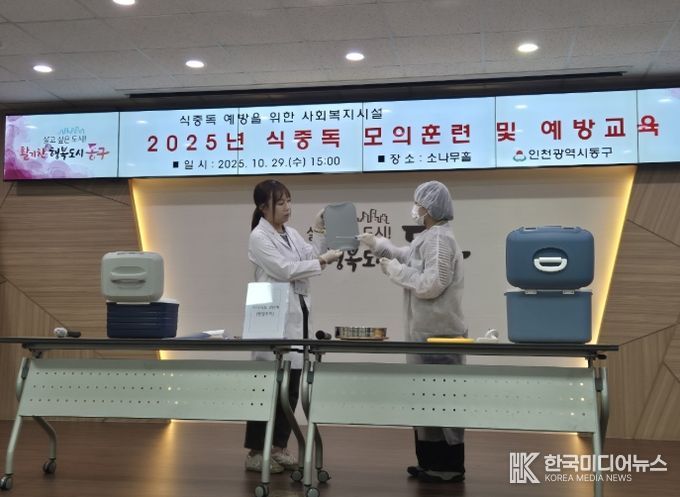 [ 한국미디어뉴스 이원희 기자 ] 인천 동구는 지난 29일 구청 소나무홀에서 식중독 대응 역량 강화를 위한 ‘식중독 발생 현장대응 모의훈련 및 식중독예방 특별교육’을 진행했다고 밝혔다.