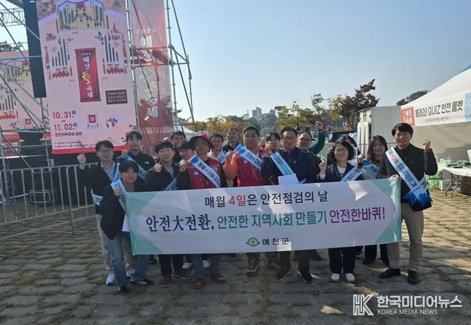 [ 한국미디어뉴스 이보영 기자 ] 예천군은 31일 오후 2시부터, 한천체육공원 일원에서 열리는 ‘2025 예천활축제&농산물축제’의 안전사고 예방과 방문객 안전의식 향상을 위한 안전점검 캠페인을 실시했다.