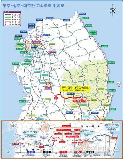 이번에 선정된 무주~성주~대구 간 고속도로는 동서3축의 유일한 단절 구간으로서 왕복 4차로 86.7㎞를 건설하는 사업으로 7조여원이 투입되는 대형 SOC사업이다.