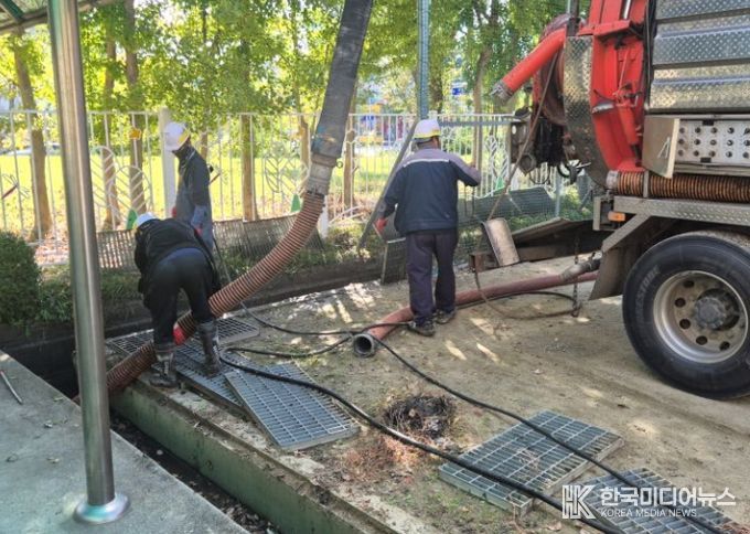 이번 사업은 집중호우 시 토사, 낙엽 등 이물질로 배수로가 막혀 발생하는 운동장 및 학교 시설물 침수 피해를 사전에 방지하기 위해 추진됐다.