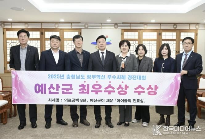 [ 한국미디어뉴스 김서안 기자 ] 예산군은 충남도가 주관한 2025년 정부혁신 우수사례 경진대회에서 최우수상을 수상했다고 4일 밝혔다.
