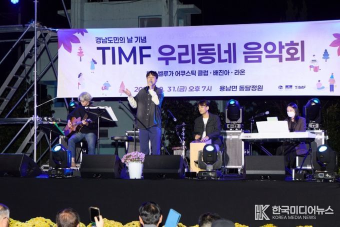 [ 한국미디어뉴스 이원영 기자 ] 톹영시는 지난 10월 31일 용남면 동달공원에서 경남 도민의 날(10월 14일) 기념 ‘TIMF 우리동네 음악회’를 개최했다.