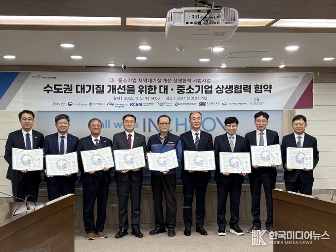 [ 한국미디어뉴스 이원영 기자 ] 기후에너지환경부 소속 수도권대기환경청(청장 이상진)은 11월 5일(수) 인천광역시청에서 수도권 대기질 개선을 위해 정부․공공기관․중소기업이 참여하는 ‘수도권 지역 대기질 개선을 위한 대․중소기업 상생협력 협약식’을 개최했다고 5일 밝혔다.