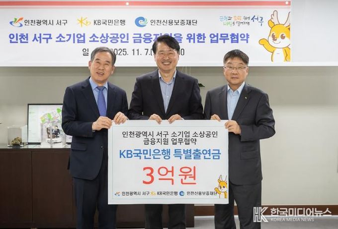 [ 한국미디어뉴스 이원희 기자 ] 인천 서구는 지난 7일 국민은행, 인천신용보증재단과 함께 45억원 규모의 ‘소기업·소상공인을 위한 금융지원 협약보증’ 업무 협약을 체결했다고 밝혔다.