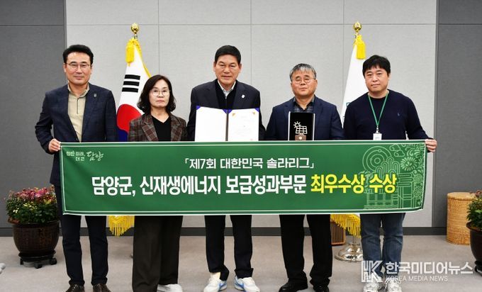 [ 한국미디어뉴스 이원영 기자 ] 담양군이 신재생에너지 보급에 앞장선 공로를 인정받아 ‘제7회 대한민국 솔라리그(K-Solar League)’에서 최우수상을 수상했다.