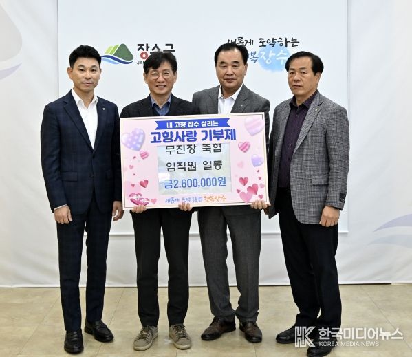 최훈식 장수군수는 “매년 잊지 않고 고향사랑기부제에 함께해주신 무진장축협 임직원 여러분께 깊이 감사드린다”며 “보내주신 소중한 기부금은 장수군의 더 나은 미래를 위해 군민 복지와 지역 발전에 의미 있게 사용하겠다”고 밝혔다.