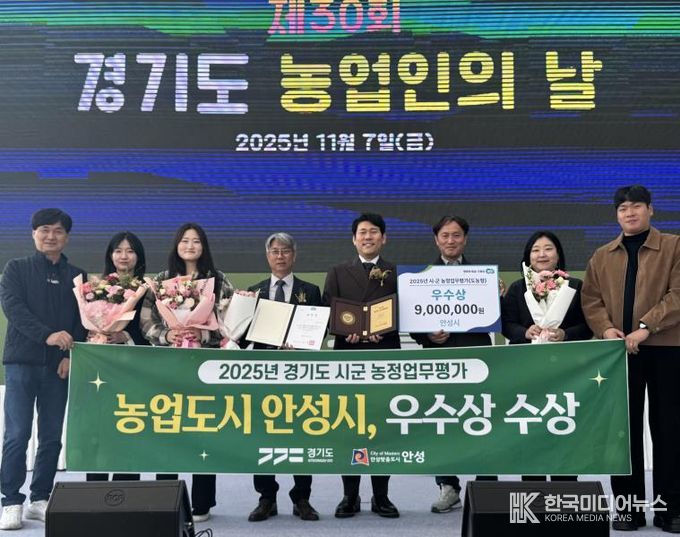 [ 한국미디어뉴스 이보영 기자 ] 안성시가 2025년 경기도 시·군 농정업무 평가에서 우수 기관으로 선정되어 ‘우수상’을 수상했다. 지난해 ‘장려상’을 받은데 이어 올해는 한 단계 도약한 성과를 거두며, 지역 농정 추진 역량을 다시 한번 입증했다.