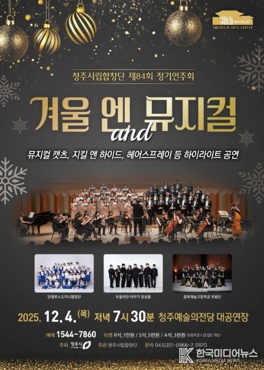 이민영 예술감독 겸 상임지휘자는 “이번 공연을 통해 시민들에게 보다 친숙하고 풍성한 문화 향유의 기회를 제공하고자 한다”며 “연말을 맞아 가족, 친구, 연인과 함께 즐길 수 있는 따뜻한 공연으로, 청주시민들의 문화적 감수성을 높이는 데 기여하겠다”고 밝혔다.