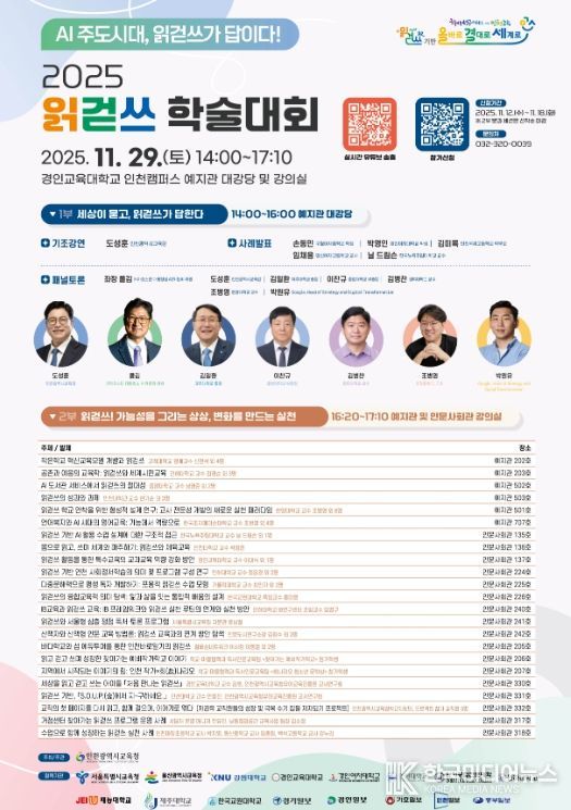 [ 한국미디어뉴스 이원영 기자 ] 인천광역시교육청은 11월 29일 경인교육대학교에서‘AI 주도시대, 읽걷쓰가 답이다!’를 주제로 급변하는 AI 중심 사회에서 읽걷쓰 교육의 중요성과 적용 사례를 조명하는‘2025 읽걷쓰 학술대회’를 개최한다.