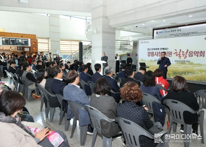 [ 한국미디어뉴스 이원영 기자 ] 강릉시는 11일 점심시간을 활용하여 시청 1층 로비에서 직원들을 위한 힐링음악회를 개최한다.