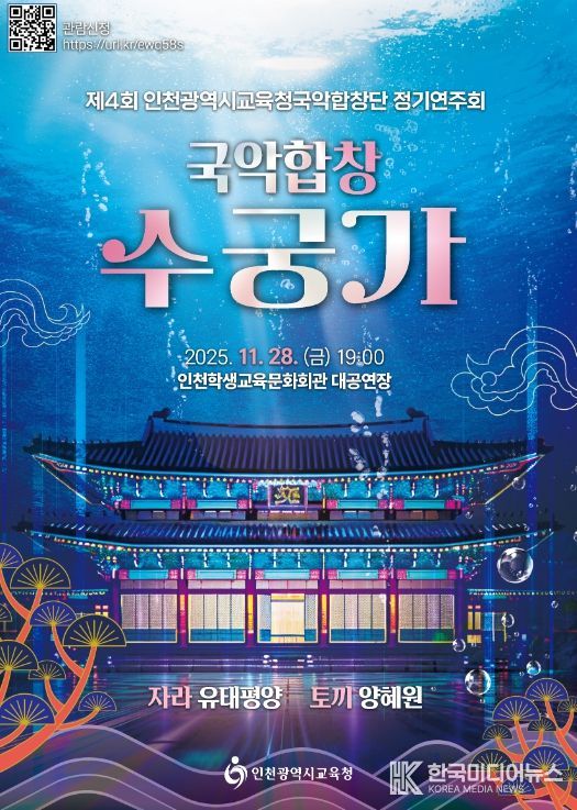 [ 한국미디어뉴스 이원영 기자 ] 인천광역시교육청은 11월 28일 오후 7시 인천학생교육문화회관 대공연장에서 ‘제4회 인천광역시교육청국악합창단 정기연주회’를 개최한다.