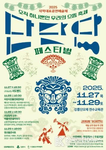 [ 한국미디어뉴스 이원영 기자 ] (사)강릉단오제위원회는 오는 11월 27일부터 29일까지 3일간 강릉단오제전수교육관 일원에서 ‘2025 단단단페스티벌’을 개최한다고 밝혔다.