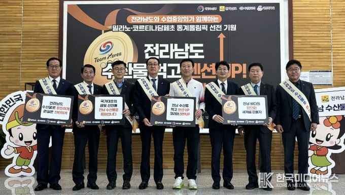[ 한국미디어뉴스 이종철 기자 ] 전라남도는 12일 충북 진천 국가대표 선수촌에서 제25회 밀라노 동계올림픽에 참가하는 대한민국 국가대표 선수의 선전을 기원하고, 전남 청정 수산물의 우수성을 알리기 위해 전남 수산물 홍보행사를 개최했다.
