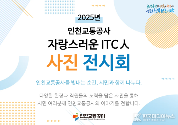 [ 한국미디어뉴스 이원영 기자 ] 인천교통공사(사장 최정규)는 시민과 함께 공사의 다양한 현장을 공유하기 위한 ‘자랑스러운 ITC人 사진전’을 오는 11월 18일부터 25일까지 인천시청 중앙홀에서 개최한다고 13일 밝혔다.