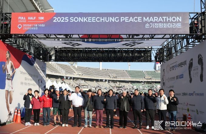 [ 한국미디어뉴스 문상수 기자 ] 16일 ‘2025 손기정 평화마라톤대회’가 열린 고양종합운동장, 이동환 고양특례시장은 환영사를 통해 “광복 80주년을 기념한 뜻깊은 대회, 도로 위를 맘껏 달리며 자유를 만끽하고 광복의 의미를 되새기길 바란다”고 말했다.