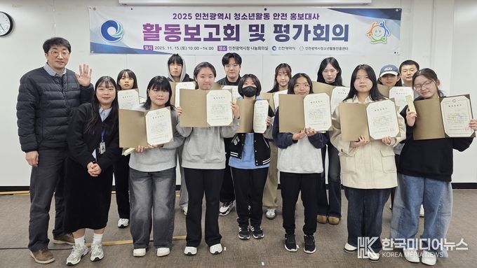 [ 한국미디어뉴스 이원영 기자 ] 인천광역시청소년활동진흥센터에서는 지난 15일(토) 인천광역시청 본관 나눔회의실에서 「2025 인천광역시 청소년활동 안전 홍보대사」 활동보고회 및 평가회의를 개최했다고 17일 밝혔다..