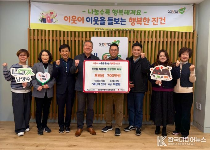 [ 한국미디어뉴스 김서안 기자 ] 남양주시는 19일 진건퇴계원행정복지센터 미팅룸에서 한국패션협회 회원사 소그룹 모임인 ‘패션이 떴다’가 취약계층 겨울나기 김장 지원을 위한 후원금 700만 원을 전달했다고 밝혔다.